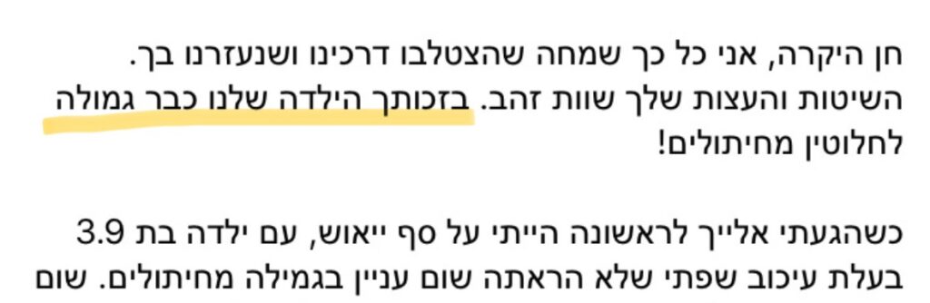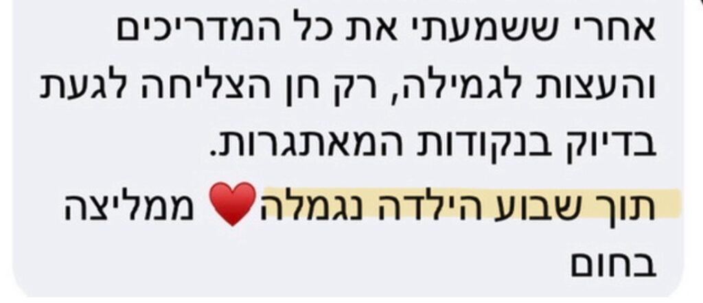 בשנים האחרונות עזרתי לאלפי הורים לגמול את הילד שלהם בדרך שבאמת מבינה את הצורך של הילד ומובילה לשיתוף פעולה עם התהליך.